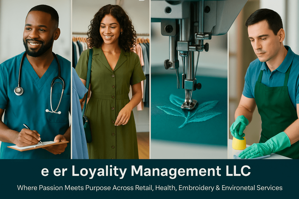 Welcome to e er Loyality Management LLC — a business built on versatility, precision, and service. Whether you’re seeking custom embroidery, professional retail support, healthcare administrative assistance, or top-tier housekeeping solutions, we bring excellence and care to every project.